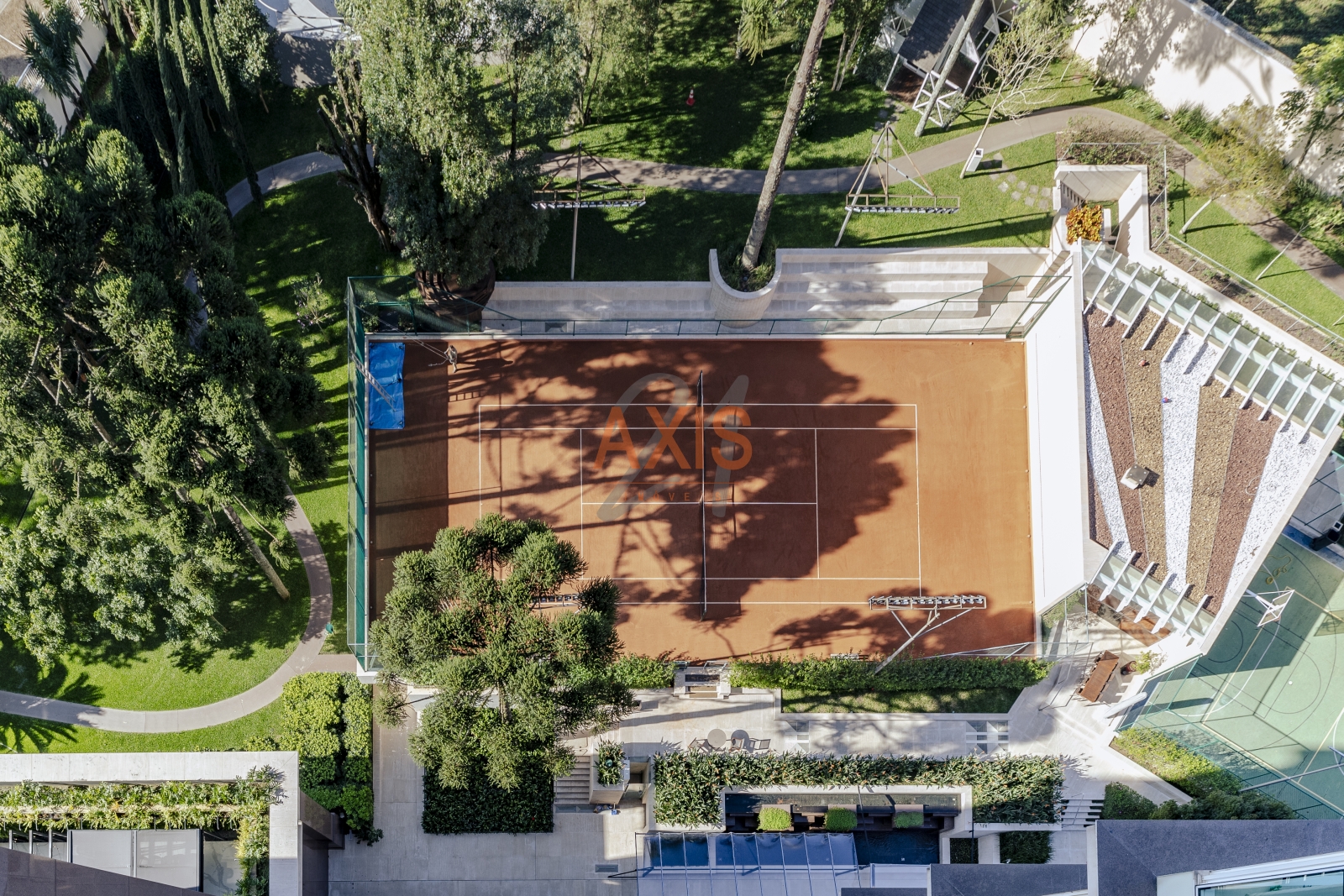 Infraestrutura e lazer de alto padrão: Heliponto, Spa completo, Quadra de tênis,Campo de golfe (putter green), Piscinas externas, Bar inglês e bar da piscina, Salões de festas, Brinquedoteca e playground, Pista de cooper, Salão de beleza, Garage club para colecionadores de carros, Serviço de gastronomia 24 horas.
