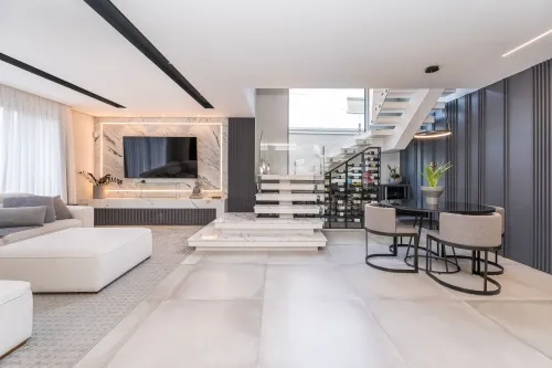 A residência impressiona pelo projeto bem integrado, pela automação completa e pelo alto nível de conforto. São 10 placas solares, piscina aquecida, preparação para instalação de elevador de grande porte e ambientes amplos pensados para um estilo de vida moderno e funcional.
