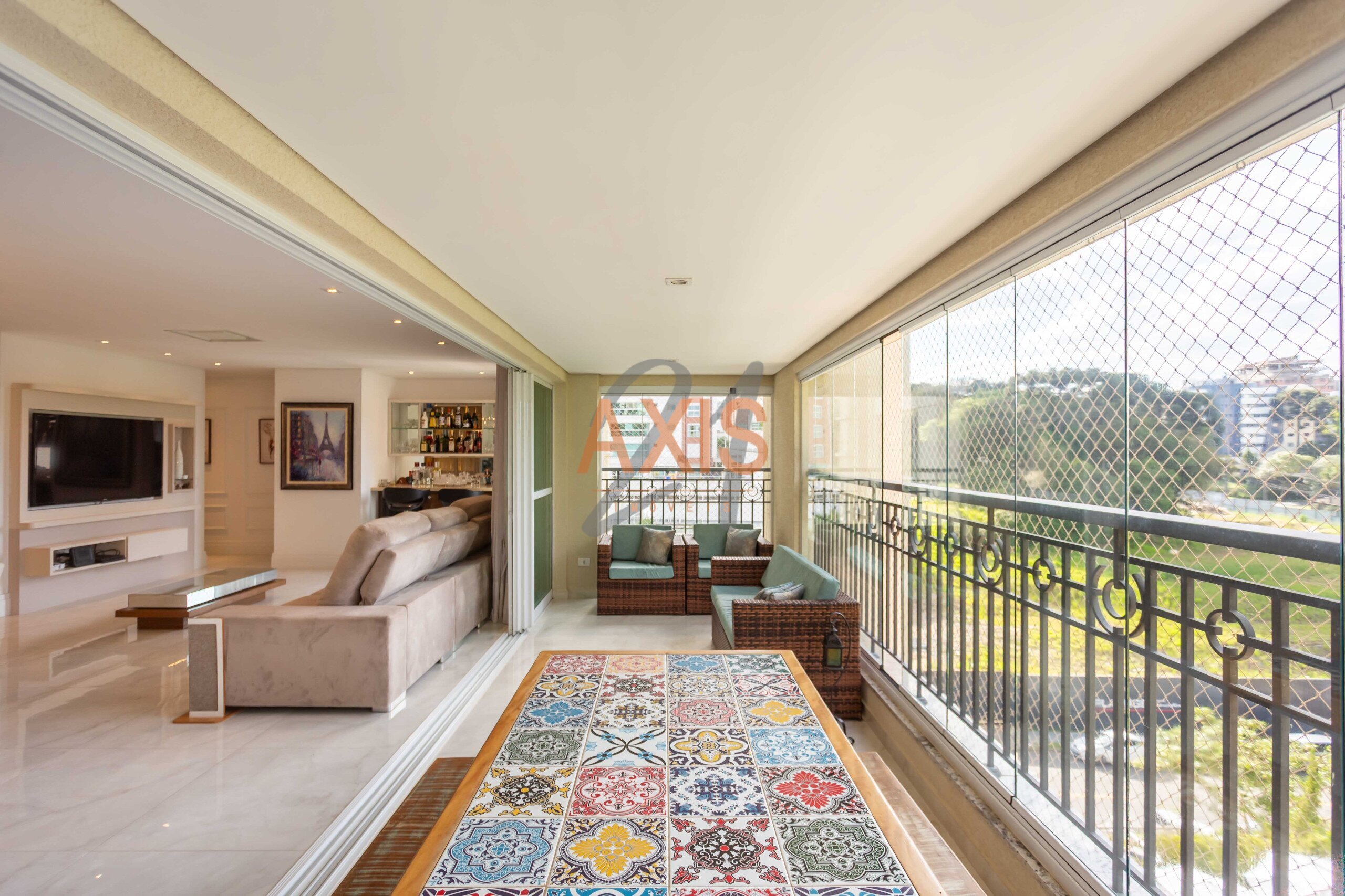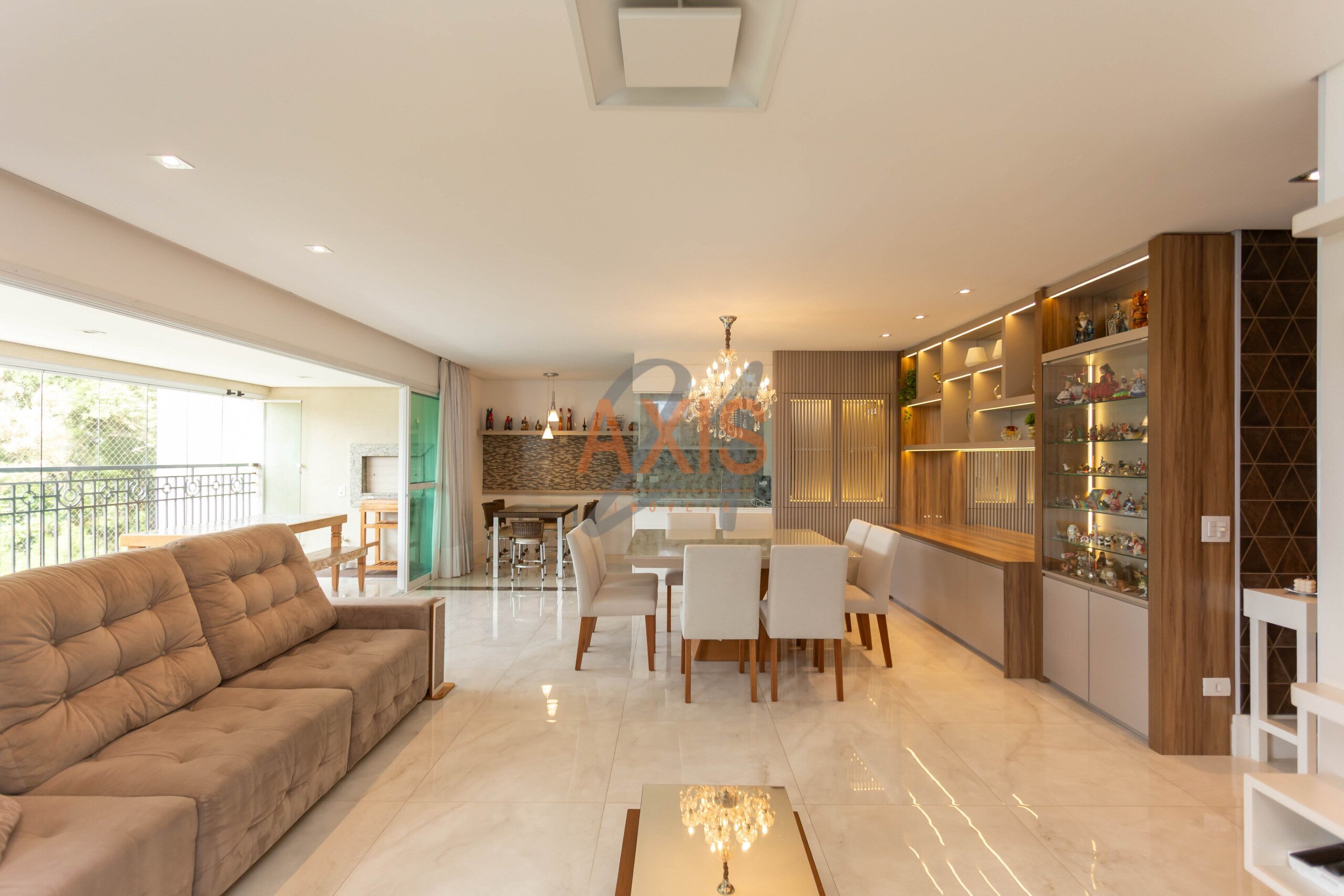 - Sala integrada à sacada com churrasqueira