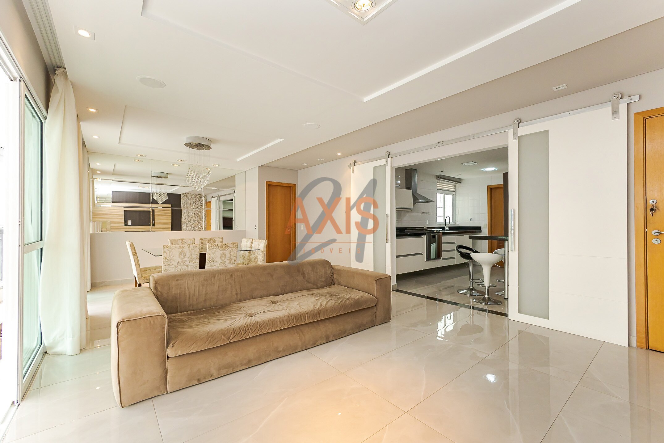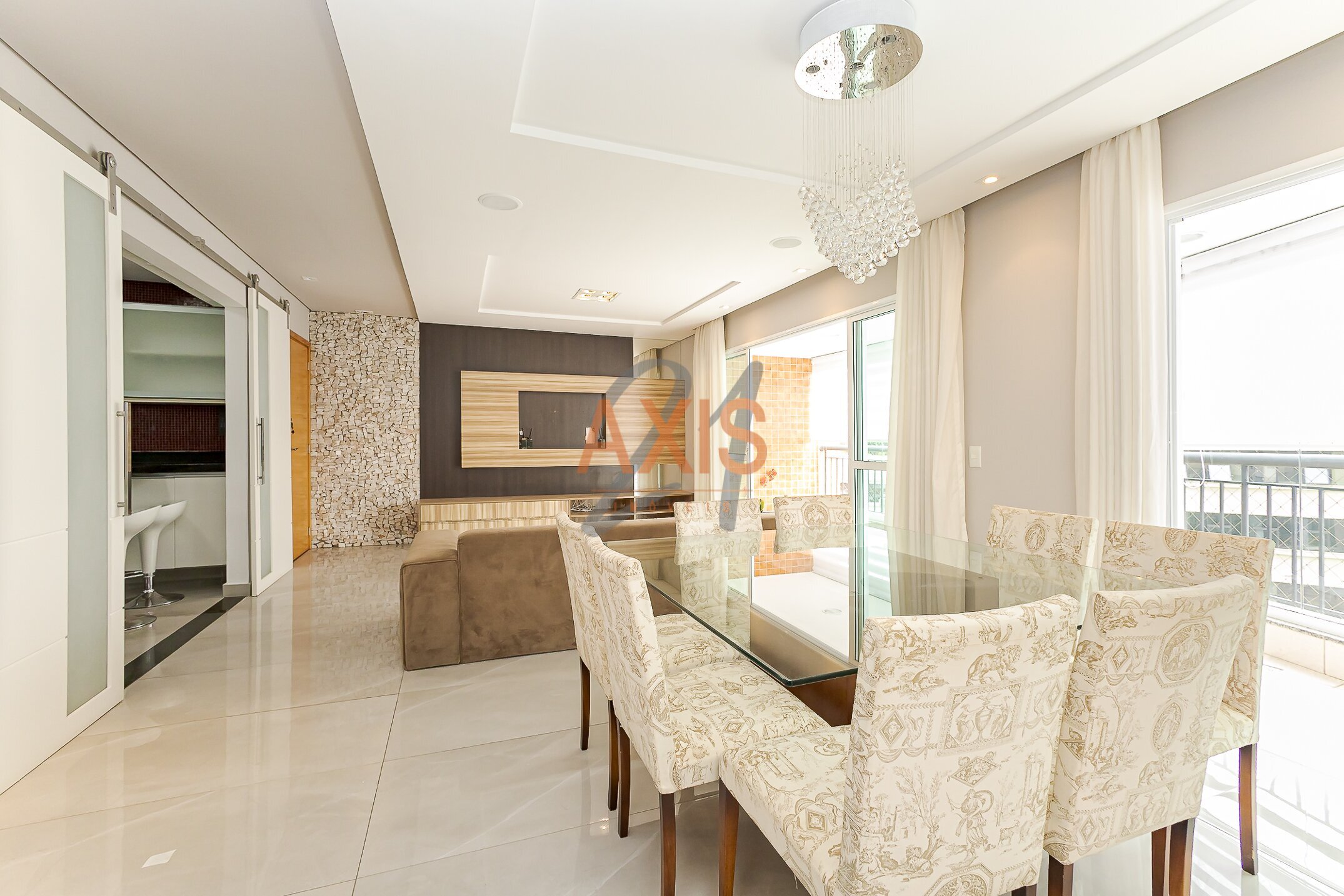 - sala social e sala de jantar com sacada ampla