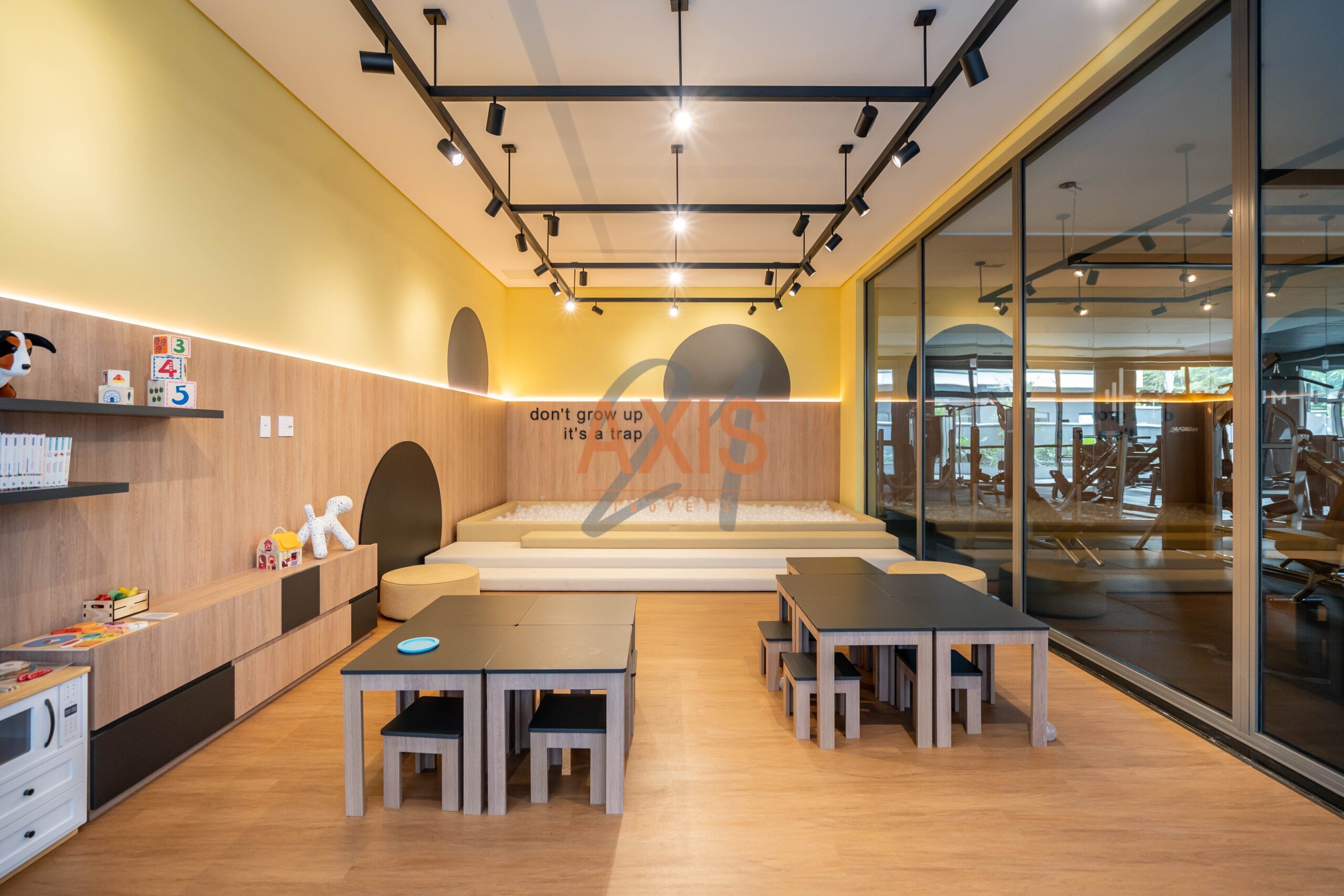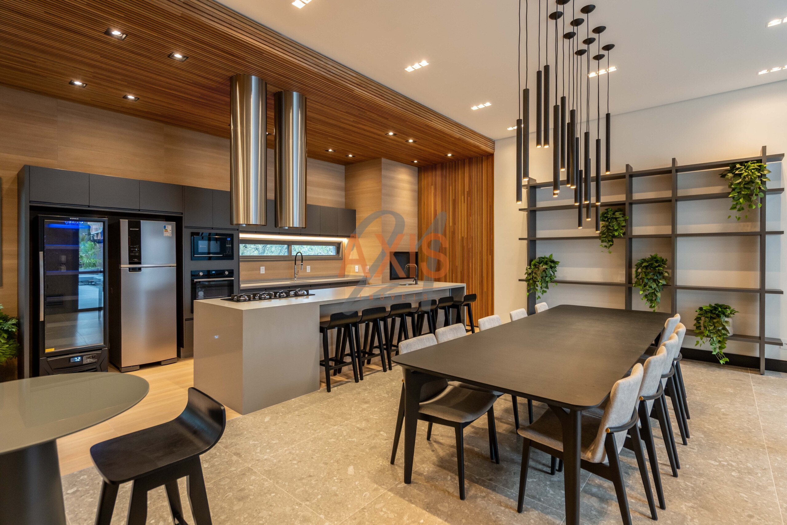 O condomínio oferece infraestrutura completa de lazer: salão de festas, espaço gourmet, steakhouse exclusiva, sports lounge bar, business center, academia completa, sauna, piscina coberta e aquecida, brinquedoteca, playground, pet place e quadra poliesportiva.