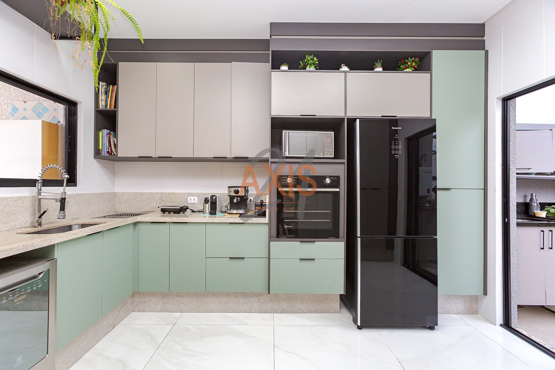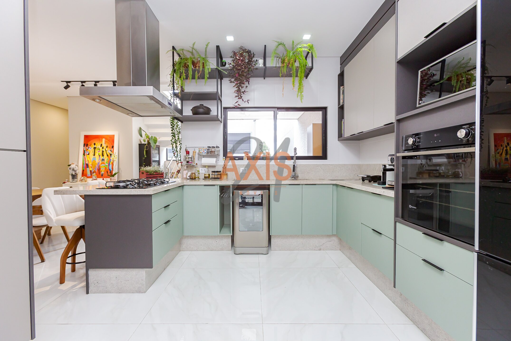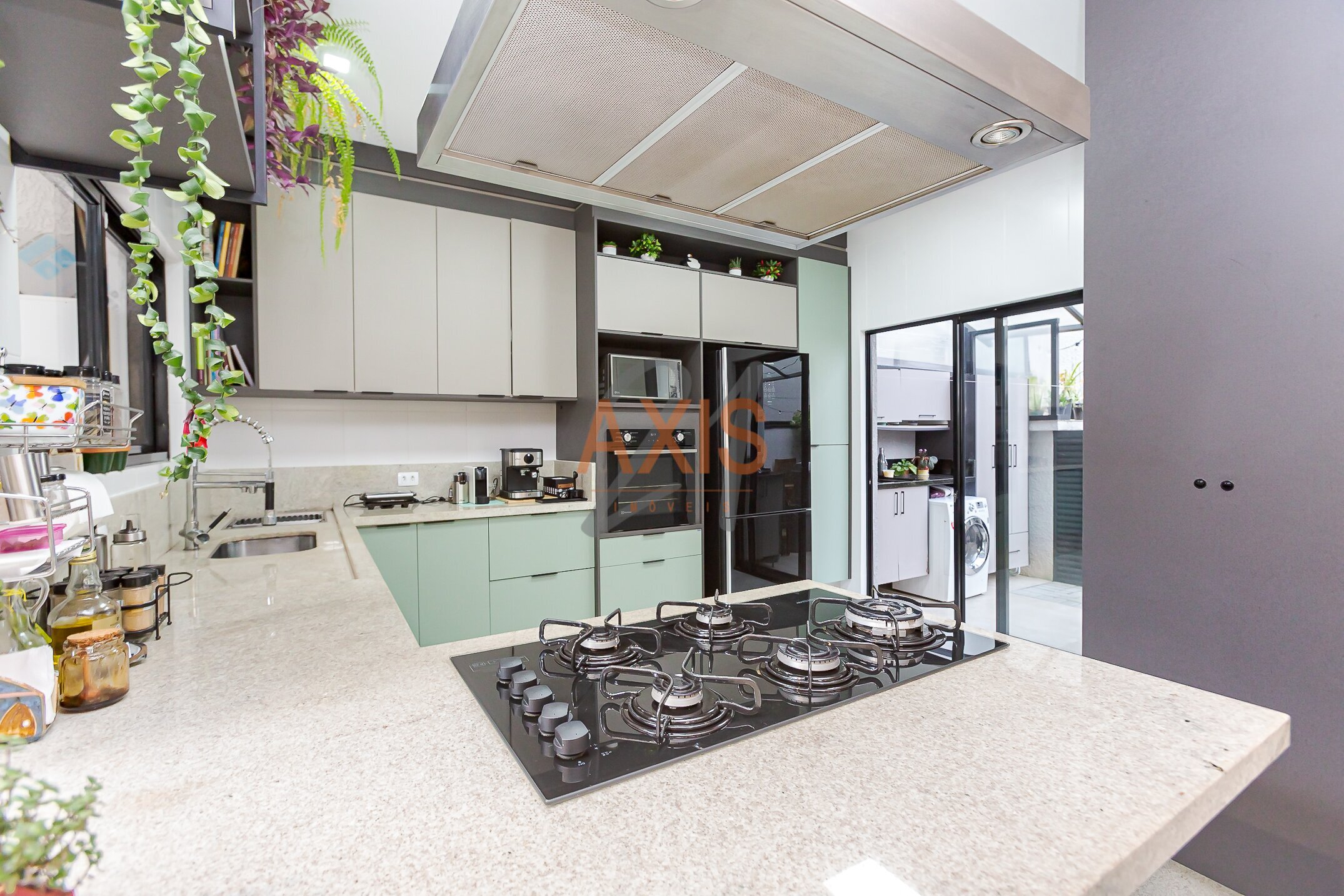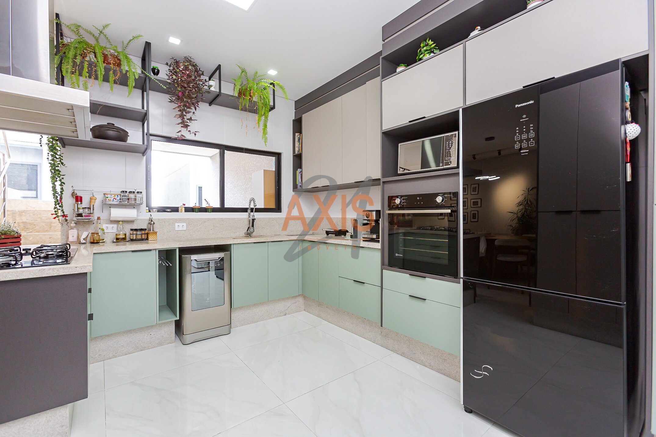 - Cozinha mobiliada com armários e eletrodomésticos
